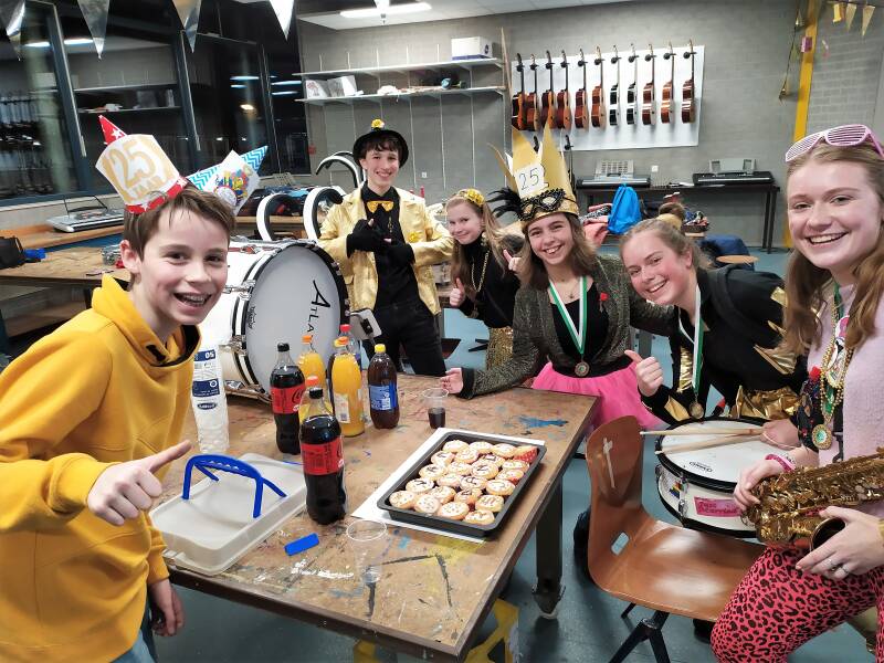 We hebben gespeeld op de scholen, bij de bejaarden, in de optocht, bij het ontbijt en op de kiendermiddag.