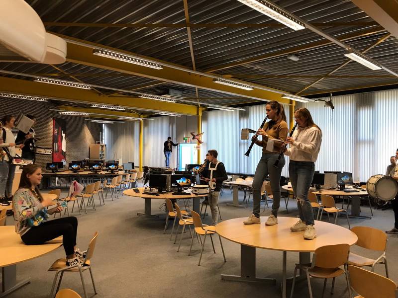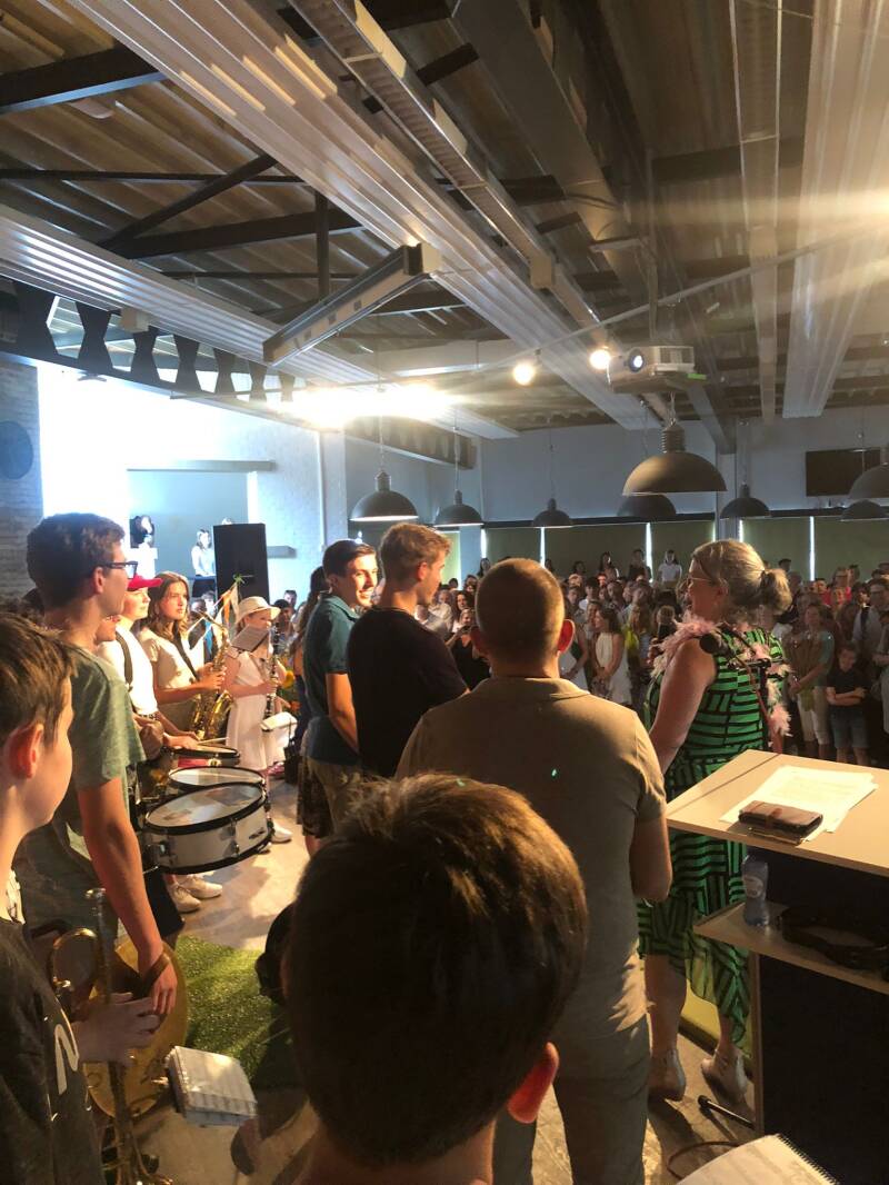 Het schooljaar is afgesloten met het eindfestival ivm het afscheid van het gebouw aan de Lyceumlaan. Het was een kleiner groepje, maar het liet goed van zich horen