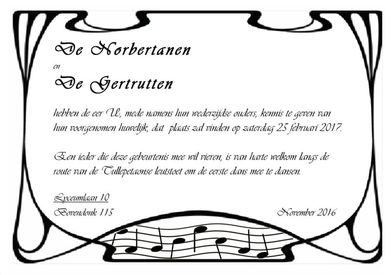 - 17 en 24 november zijn de eerste repetities in tekenlokaal Geel. Iedereen die mee wil spelen is welkom